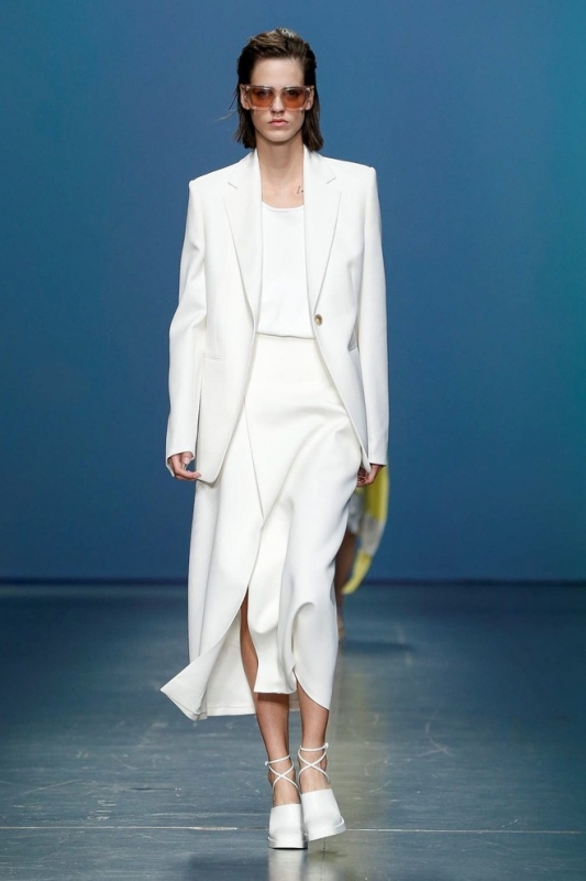 Минималистично — не значит скучно. Это в очередной раз доказывает бренд Boss, дебютировавший на Неделе моды в Милане несколько часов назад. Дизайнеры марки представили идеальный повседневный гардероб, состоящий из красивых, а главное правильных костюмов, несложных асимметричных платьев с широкими поясами и объёмных свитеров. Цветовая палитра была вдохновлена торговым комплексом Hudson Yards в Нью-Йорке, а потому в коллекции так много чистых оттенков белого, небесно-голубого и бежевого.Тренд Монохром; строгий, но асимметричный крой; акцент на талии; объём. Детали Полупрозрачные очки мармеладных оттенков; плетёные босоножки; сумки с бахромой.