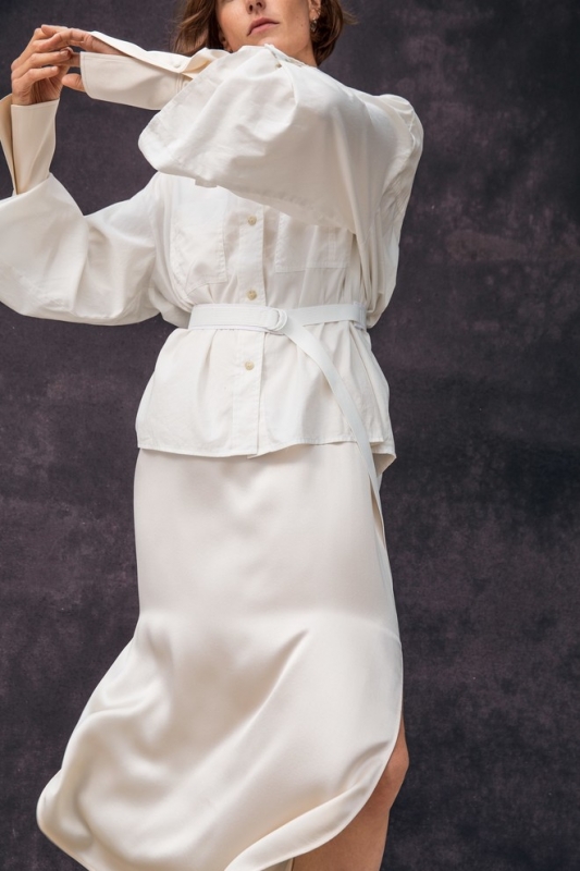 Как носить очень, очень протокольный комплект и не выглядеть заурядно? Наше предложение: выбирать вещи в белом цвете! В дополнение можно поэкспериментировать с фактурами: пусть юбка будет, например, плиссированной или из струящейся ткани, как в лукбуках Gabriela Hearst и Vince.