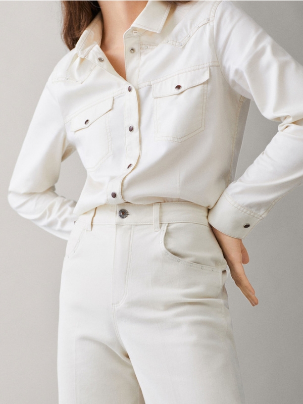 Белые джинсы — константа на весенне-летний сезон: они отлично смотрятся с грубыми свитерами и нежными шелковыми рубашками, с тренчкотами и рабочими куртками, с кедами и сандалиями. Еще с такими джинсами будет легко наконец-то осмелиться на all white — добавьте к ним офисную белую рубашку и кеды. Ах, да: не забудьте взять с собой экспресс-пятновыводитель!