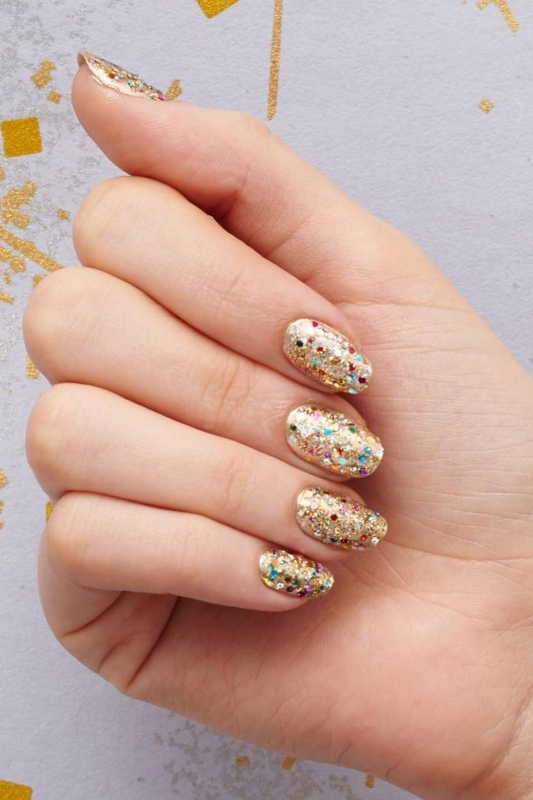 Ногти в стиле диско – то, что нужно для яркой весенней вечеринки и не только. Камни, стразы, блестки и золото – полный комплект!