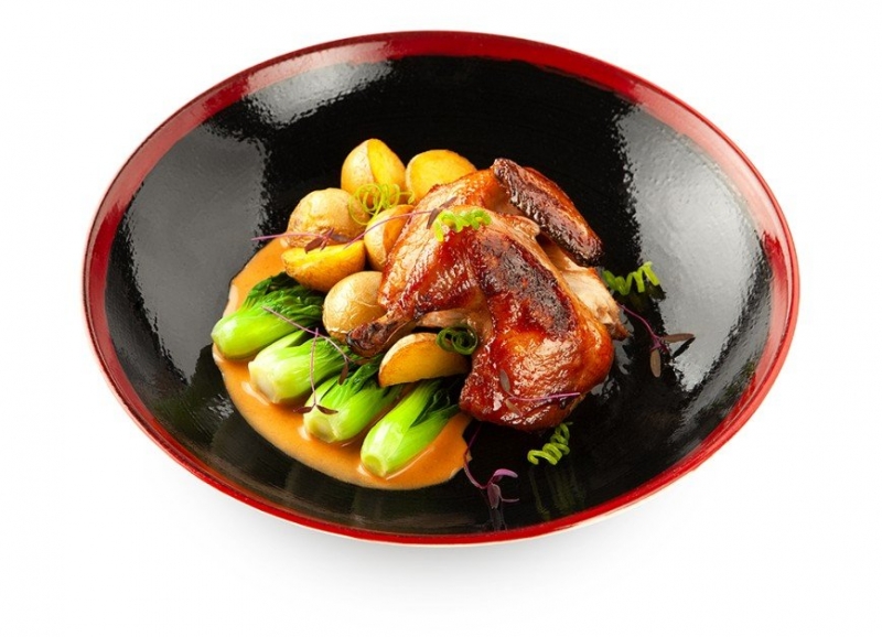 Тори пак чой (455 р.) Хрустящий цыплёнок с пак чой и мини-картофелем под соусом «Том-ям».