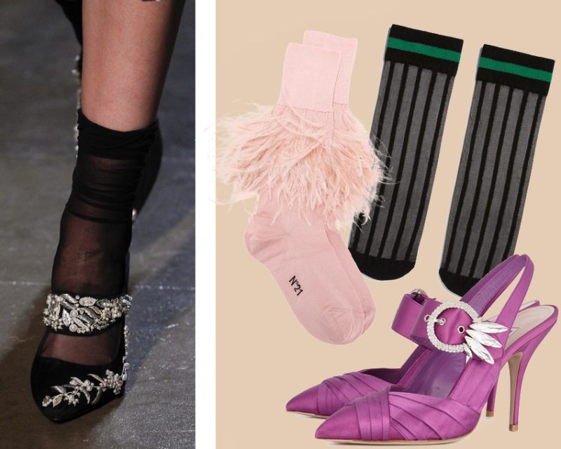 Кто бы мог подумать, что этот тренд не только не выйдет из моды, но станет еще популярнее в 2018 году. Разумеется, абы какие носки в этот пункт не вписываются, а вот аксессуары, расшитые пайетками, жемчужинами или перьями, вполне.