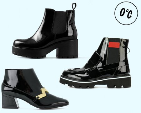 Вместо обуви из обычной кожи переходи на лакированную. В ботильонах и полуботинках точно не замерзнуть даже при легком минусе (особенно если взять пару на размер больше и носить ее с теплыми носками), зато привести их в порядок можно буквально за минуту, протерев простой влажной салфеткой. Кто пробовал провернуть этот трюк с обычной обувью, знает, что сапоги и ботинки тут же покрываются ужасными белыми разводами. С лаком такого точно не будет.