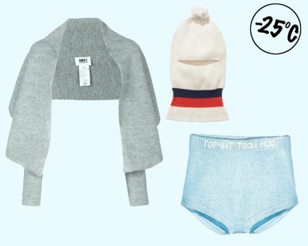 Когда на улице даже дышать больно, вместо обычной шапки надевай балаклаву из шерсти или кашемира. А к шарфу добавь аксессуар от MM6 Maison Margiela: это что-то среднее между болеро и палантином.