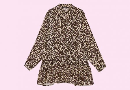 Вспомни нашу инструкцию «как носить вещи с леопардовыми принтами» и отправляйся на охоту. Сейчас в Zara можно найти немало удачных вещей с анималистичными рисунками вроде этой длинной блузки свободного кроя, которую, кстати, миниатюрные девушки могут смело надевать в качестве платья с плотными черными колготками.