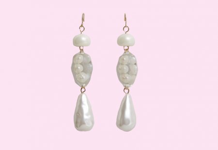 Mango 999 руб.Еще одни красивые крупные серьги с невероятно модным, необработанным жемчугом (пусть и ненастоящим). Носи их с жакетами в духе power dressing и свободными рубашками. На вечеринку можно надевать всего одно украшение (моносерьги — до сих пор большой модный тренд) и говорить знакомым, что потеряла вторую во время веселого танца.