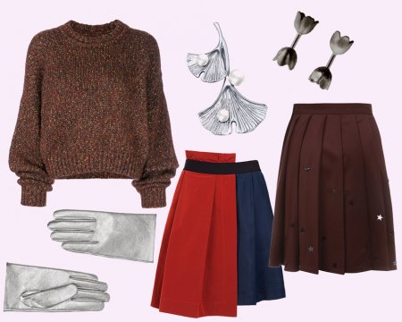 Попробуй скомбинировать плиссированную юбку из тонкой шерсти со свитером, украшенным скандинавскими узорами, особенно популярными в период новогодних и рождественских праздников. Отличным дополнением к ним послужат вязаный берет или кашемировая косынка.