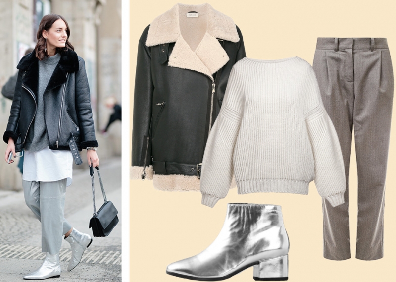 При взгляде на пару футуристических ботильонов из металлизированной кожи невольно вырывается: «Детка, ты просто космос». Когда от обуви черного цвета мутит, коричневая кажется скучной, а разноцветная не вписывается в гардероб, серебряные ботильоны точно спасут ситуацию. Носить их куда проще, чем кажется: рифмуй свою пару с объемными пуховиками, дубленками и пальто. Особенно круто такая пара смотрится с одеждой в серых оттенках: костюм покорителя галактики в свободное от работы время.