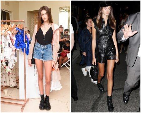 Если еще совсем недавно все сходили с ума по ботфортам, то теперь снова наступила очередь грубых ботинок. Кайя обожает бренд Dr.Martens и не променяет его ни на какие каблуки (исключение — выход на подиум и светские мероприятия). В повседневной жизни любимое сочетание модели — ботинки на шнурках и женственные платья в горошек, комбинезоны и короткие шорты.
