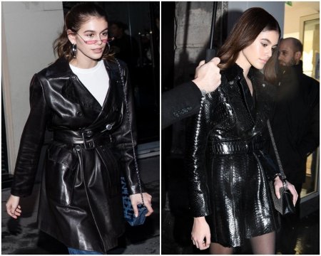 Смелый, эффектный и запоминающийся, кожаный плащ остается мощным трендом вот уже несколько лет. Кайя Гербер носит такой с джинсами и кроссовками, трениками, а еще в качестве платья с обувью на каблуках.