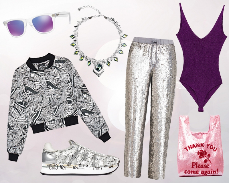 Очки Ray-Ban; колье Uno de 50; бомбер Катя Dobrяkova; кроссовки Premiata; брюки P.A.R.O.S.H. (aizel.ru); боди Bershka; сумка ASHISH (farfetch.com).Сергей Сухов @sergeysuxov