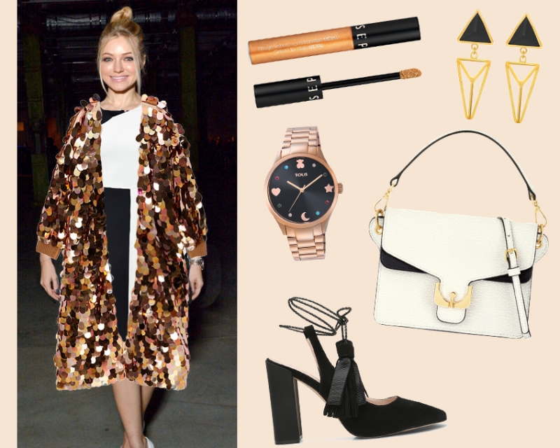 Новое платье короля Инны Маликовой — золотое пальто, составленное из крупных пайеток. В нем мы предлагаем ей идти на следующий показ Игоря Чапурина, ну или просто гулять по городу и бросать солнечных зайчиков на зазевавшихся прохожих.