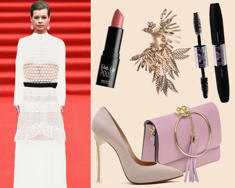 Платье, Self-Portrait (aizel.ru); помада NYX; брошь Yana Markova; тушь Bronx; туфли CASADEI; сумка Christina RyssПереходим к новой жертве — Полине Гагариной. Красно-черное роковое сочетание цветов вкупе с паучком и сердцем на груди навевают воспоминания о главном осеннем костюмированном празднике — Хэллоуине. Но певица выбрала такой наряд для pre-party музыкальной премии — в тон дорожке.