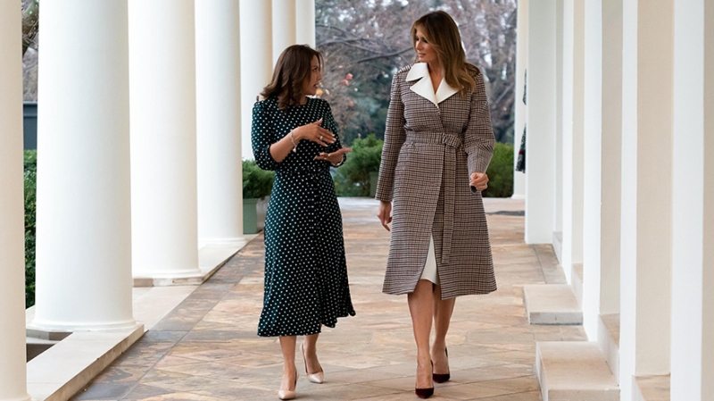 legion-media.ruПервая леди придерживается классического стиля в одежде — того требует дипломатический протокол. И, согласись, ей это только на руку: весь мир восхищается ее утонченным вкусом. Чего стоит одна только огромная коллекция лодочек на высоком каблуке, которые Мелания любит сочетать с пальто и носит даже в минусовую температуру. Как же восхитительно она смотрится, когда выходит из президентского лимузина в изящной обуви! И, пожалуй, только Мелания Трамп может грациозно пройти по газону в сапогах на шпильке — более массивную и теплую обувь для своих зимних образов она тоже подбирает безупречно.