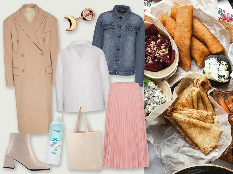 Тренч, Acne Studios; джинсовка, юбка и блузка, Faberlic; экосумка, Uniqlo; ботильоны, Portal; моносерьга, «Сахарок»; мицеллярное масло для лица, BabeЗима, давай, до свидания! Встречай весну и скидки до 60%!На этой неделе можно забыть о диетах: в России отмечают Масленицу.