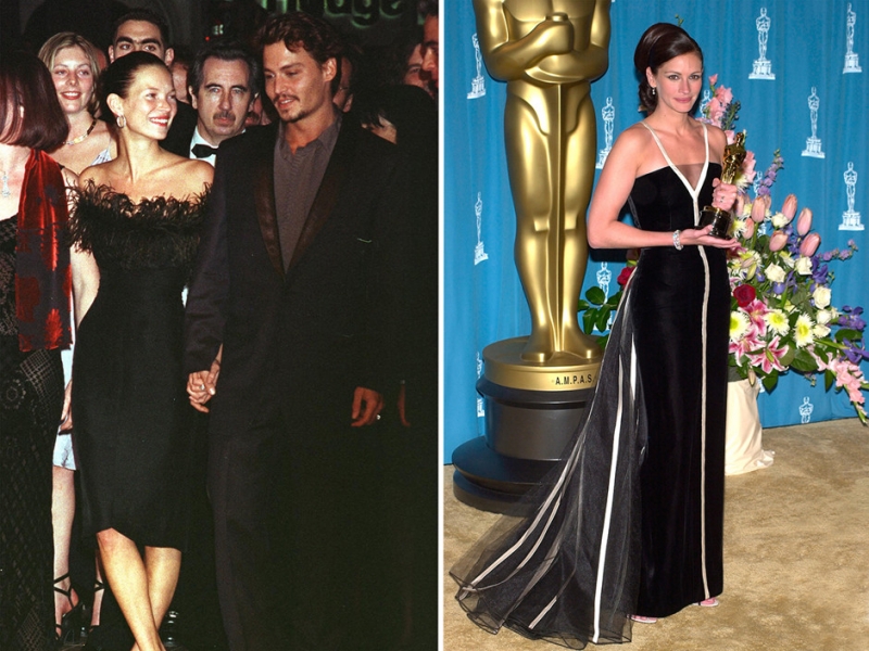 Супермодель Кейт Мосс и актер Джонни Депп на Каннском кинофестивале в 1998 году. Мосс выбрала для ковровой дорожки платье, купленное в винтажном магазине / Актриса Джулия Робертс позирует на церемонии награждения «Оскар» в винтажном платье Valentino. Лос-Анджелес, 25 марта 2001 года. Legion-media.ruИзвестно также, что актриса Вайнона Райдер однажды появилась на церемонии вручения премии «Оскар» в подержанном платье всего за 10 долларов. В одном из интервью она рассказала, что целенаправленно ходит в секонд-хенды, чтобы покупать там интересные винтажные вещи, поэтому половина ее гардероба состоит именно из такой одежды.