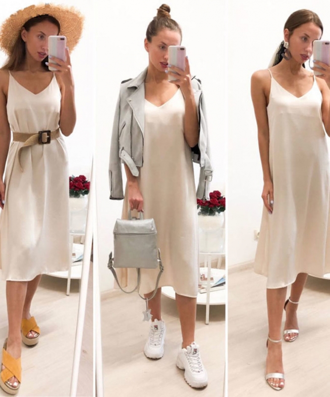 В моде — легкость, естественность и удобство. А значит бельевой стиль только укрепляет свои позиции. В будущем сезоне атласное платье-сорочка станет одной из самых трендовых вещей. Кстати, звезды обожают носить пижамы и сорочки не только дома. Жми на фото, чтобы узнать, как это делают Ксения Собчак, Полина Гагарина и даже Филипп Киркоров: Платья-комбинации стилисты предлагали носить еще прошлой зимой. Но атласным юбкам удалось завоевать все-таки больше популярности. Зато этим летом конкурентов у комбинаций практически нет: практически все бренды, не сговариваясь, уже выпустили свои варианты (смотри в галерее ниже). Комбинация напоминает сорочку, но бояться этого не нужно. Смело дополняй ее чем угодно. Тем более что эту вещь легко можно назвать универсальной! Комбинация как самостоятельное платье Один из популярных вариантов сочетания — комбинация с прямым жакетом-оверсайз. Обувь совсем необязательно выбирать на каблуках: кроме лодочек и босоножек подойдут кроссовки, кеды или броги. Комбинация как топ Стилисты предлагают заменять классический топ комбинацией: она тонкая и заправить ее, например, в джинсы, совсем несложно. Комбинация как юбка И еще одно доказательство универсальности: комбинация вполне может заменить модную атласную юбку. В теплую погоду добавляй к образу свободную рубашку, а в прохладную — объемный свитер. Не забудь, что отличные варианты таких платьев есть на AliExpress (а еще больше сэкономить помогут спецкупоны): Платье с соблазнительным разрезом за копейки Атласное миди-платье с огромной скидкой Универсально: нежный наряд Елена НечаеваФото: legion-media.ru, Инстаграм, материалы пресс-служб, лукбук Lichie