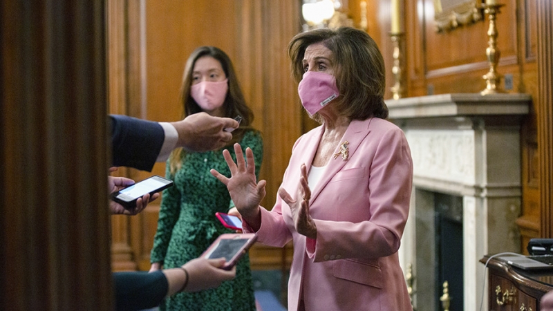 Спикер палаты представителей США Нэнси Пелоси. Фото: legion-media.ruВ том числе в подходящей к костюму маске неоднократно появлялась спикер палаты представителей США Нэнси Пелоси. За это бывшая госсекретарь Хилари Клинтон назвала Пелоси «лидером большинства в палате [представителей], а также цветовой координации между маской и брючным костюмом».