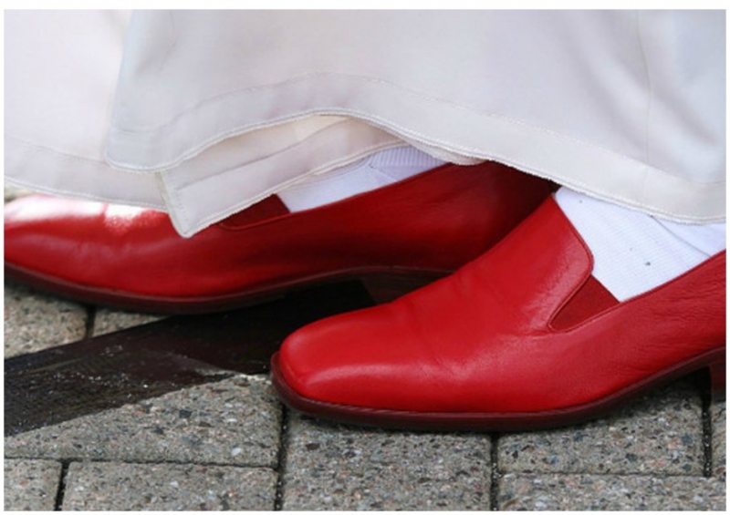 «Они сделаны из красной кожи, чрезвычайно мягкой, и их особенность в том, что подошва также выполнена из ярко-красной кожи, как и все замечательные туфли с надписью Louboutin», — рассказывал Карло Поджиоли, художник по костюмам в «Молодом папе».