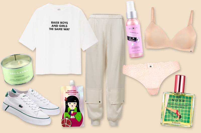 Футболка Uniqlo, штаны DOROTHEE SCHUMACHER, кеды Lacoste, комплект нижнего белья Hunkemoller, свечка, Smorodina, масло для тела и волос, NUXE, маска для лица, Avon, масло-хайлайтер для тела, MIXIT.Сидеть дома тоже совсем не вредно. Тем более что погоду синоптики обещают нестабильную, так что ждем дожди и рассказываем, чем себя занять.