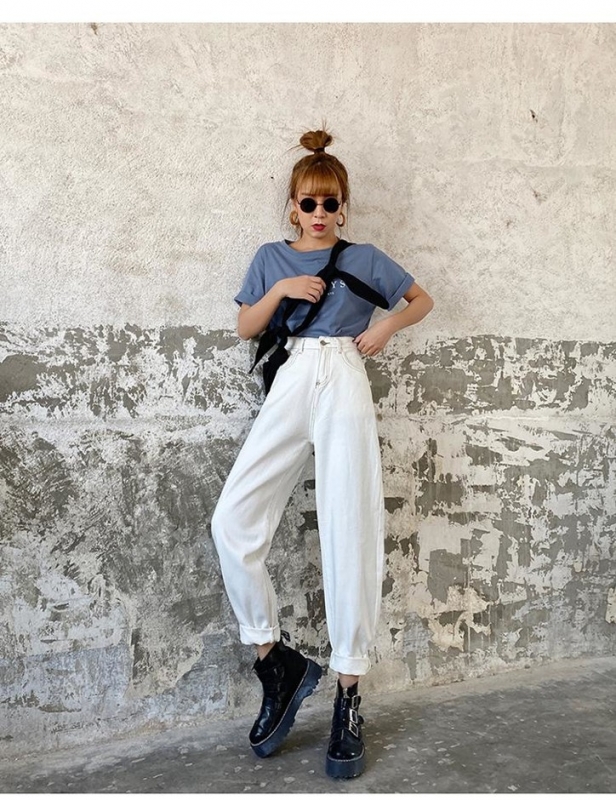 А вот звездам особенно нравится дополнять белые джинсы грубыми ботинками. Для лета вариант не очень, а вот осенью легко можно повторить образ Джиджи Хадид. Кстати, верх может быть практически любым — забавная футболка удачно дополнит лук, а женственная блузка поможет сыграть на контрасте.