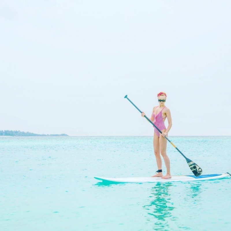 «Очень мне понравилась эта штукенция! Когда Миюша засыпает на дневной сон, мама отрывается», – гордо сообщила Полина, демонстрируя свой заплыв на доске для сапсерфинга. Напомним, сапсерфинг – это водный вид спорта, известный как серфинг с веслом. В этом виде спорта серфер стоит на доске, перемещаясь по воде с помощью весла. Доски для сапсерфинга практически не отличаются от досок для серфинга, они только немного шире и длиннее, за счет чего удерживать равновесие намного проще.