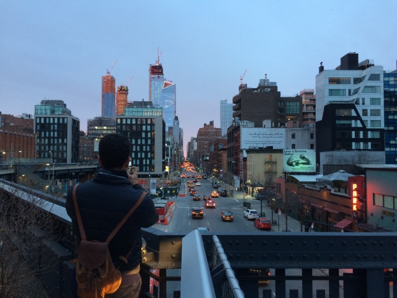 Дорога ведет через богемный район Челси и район бывших скотобоен и складов Митпэкинг, поэтому виды разнообразны и не всегда гламурны — вот это и есть настоящий Нью-Йорк.