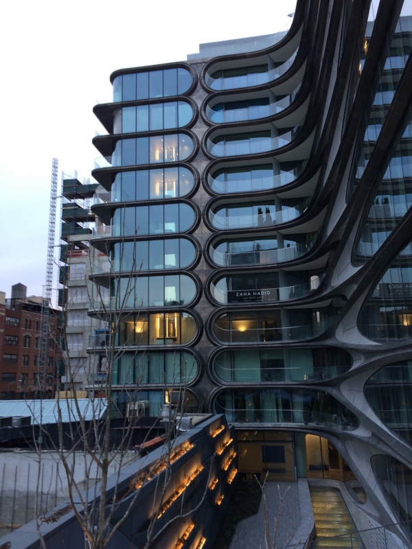 Обе стороны Хай-Лайн постепенно застраиваются супердорогим жильем — и все гуляющие с любопытством разглядывают дизайнерские квартиры (включая ванные комнаты) через громадные окна.