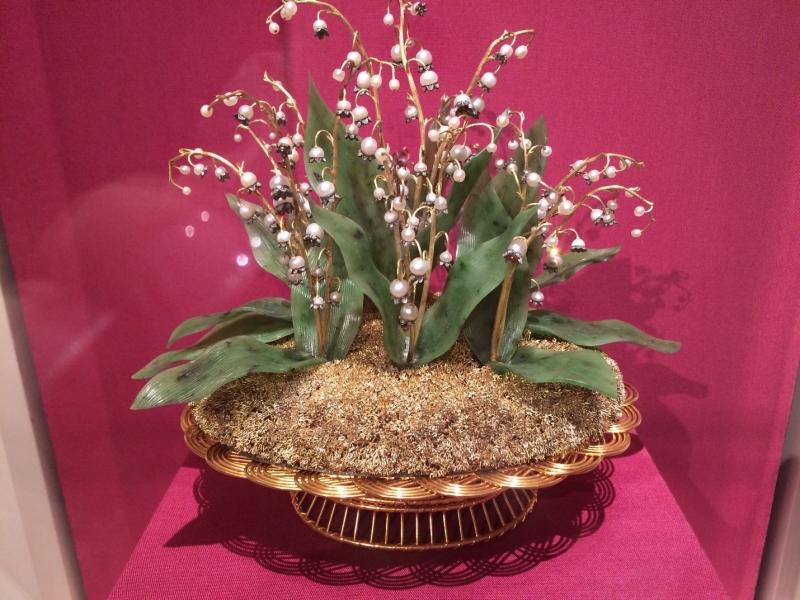Золотая корзина с ландышами, сделанными из жемчуга и бриллиантов, была подарена в 1896 году императрице Александре Федоровне в честь коронации