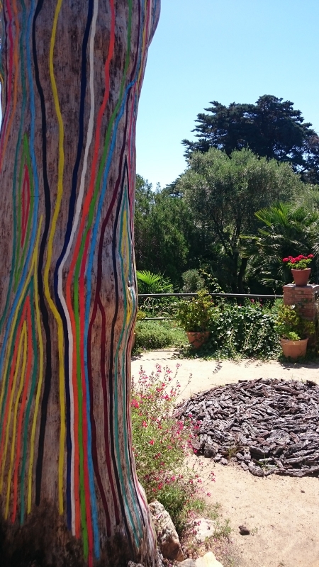 Наряду с редкими растениями, в "Маримуртра" можно увидеть объекты современного искусства. А некоторые из них создаются из самих растений. К примеру, есть разрисованное засохшее дерево, кора которого была использована для создания клумбы.