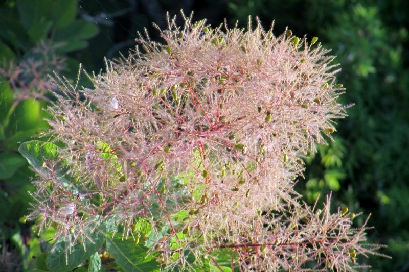 Скумпия — очень яркий кустарник. Растет повсеместно. Так и хочется прикоснуться к его цветкам, но местные жители говорят, что кустарник очень ядовитый.