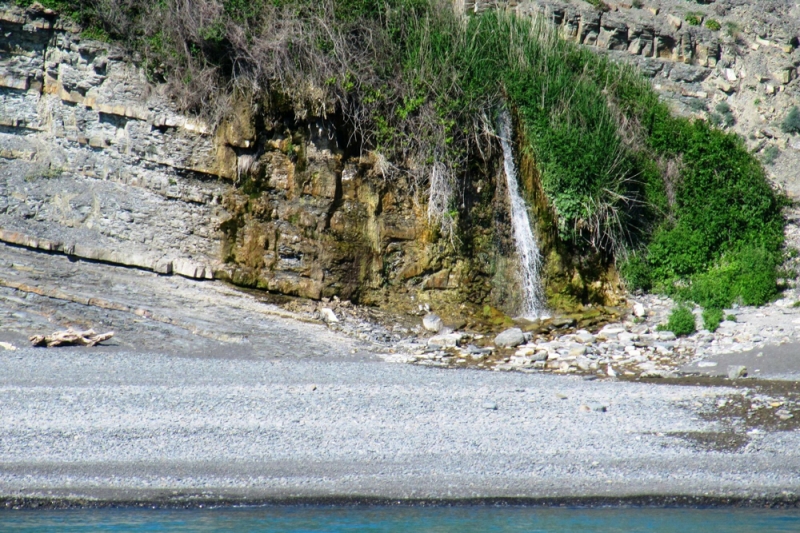 Еще одну достопримечательность заповедника — водопад Жемчужный — я тоже увидел впервые восемь лет назад. Мы собирались добраться до водопада на катере, но из-за штормового предупреждения пришлось идти пешком вдоль берега. Солнце палило нещадно, но нас спасал зонт. Если двигаться от поселка по берегу моря, то через 2 км рядом с "диким" пляжем — небольшой водопад. Здесь чистейшая морская вода и галечный пляж. Раньше летом поблизости появлялся палаточный лагерь. Сейчас это запрещено.