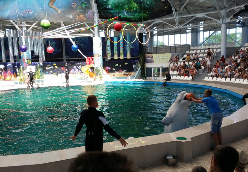 Начну с дельфинария Евпатории. Очень музыкальная, динамичная, красиво поставленная программа, ухоженные питомцы. Время пролетело так быстро, что даже не хотелось уходить. Дельфины, белые киты, морские котики навсегда поселились в наших сердцах. Какие же они все умнички.