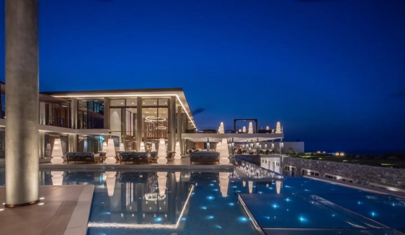 Пообедать можно в мясном ресторане у бассейна, а поужинать — в романтическом рыбном Eternal Blue — с видом на то самое вечно синее море, которое помнит и тугие паруса, и Гомера.