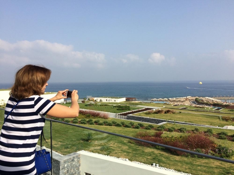 Так смотрится отель из основного ресторана — не сразу понимаешь, что перед тобой не зеленые поля, а крыши вилл