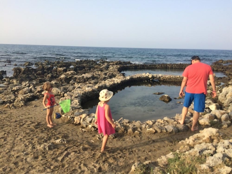 У постояльцев сьютов — свои беседки (кстати, без сейфов) — на первой линии. От большого бассейна пляж расходится в две стороны: с одной — пологий вход и длинный пирс-волнорез, обеспечивающий безмятежное купание, с другой — тоже песчаный, но с волнами и каменистыми заводями, в которых прячутся крабы. Но от детей не укрыться!