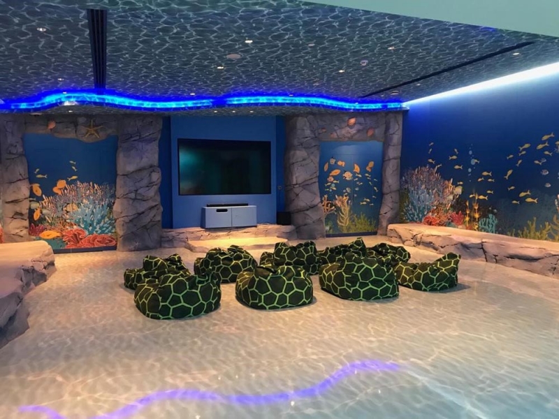 Детский клуб Jumeirah Вeach — это настоящий подводный мир. Огромный кашалот, яркий осьминог и желтая подводная лодка, встречающие вас и вашу маленькую "рыбку" на входе, не дадут ошибиться.