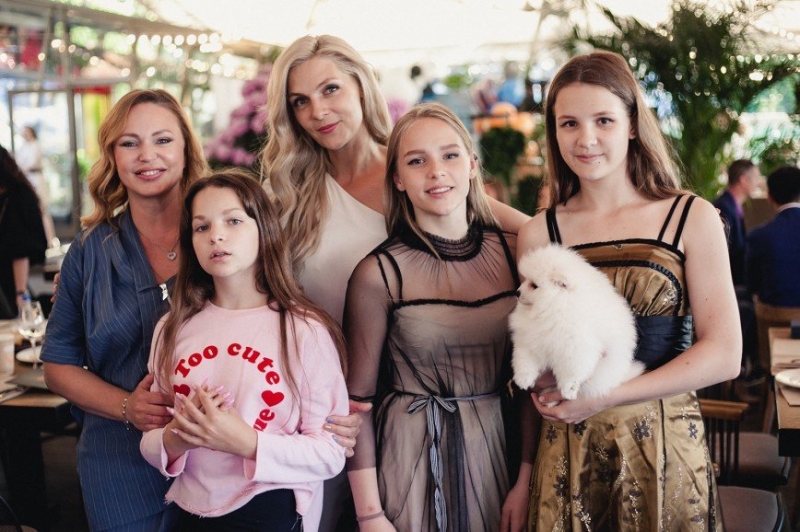 Алла Довлатова с дочкой и Екатерина Кабакова с детьми