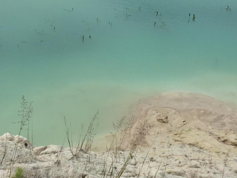 Немного пофотографировавшись и послушав небольшую лекцию о карьере, мы спустились ниже: карьер песчано-глинистый, а озеро с каждого края разного цвета. Максимальная глубина его 4 метра.