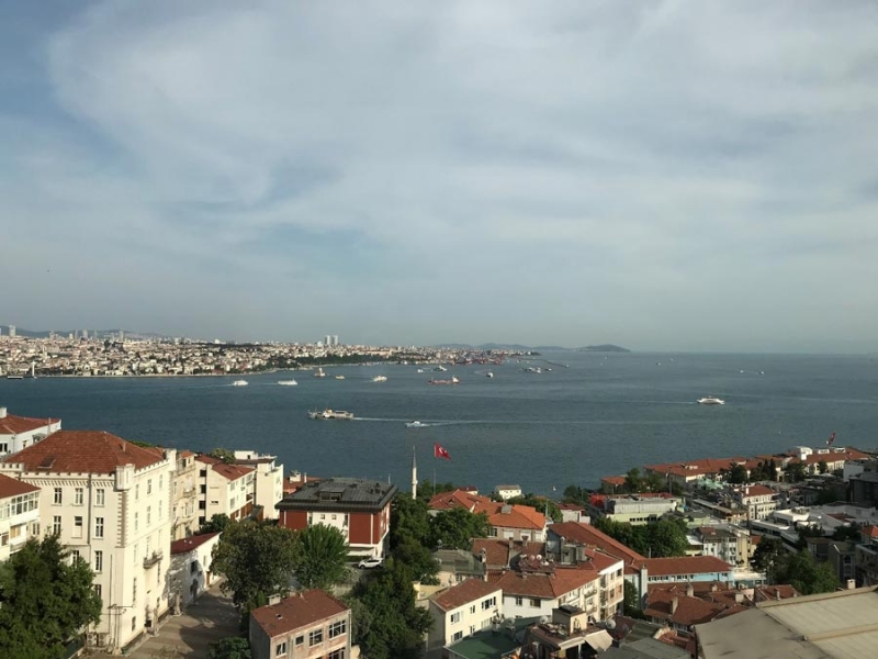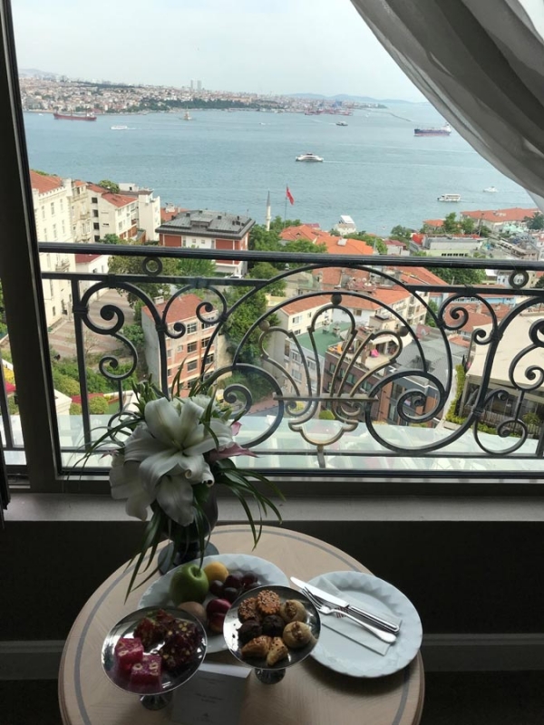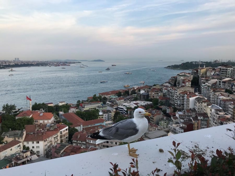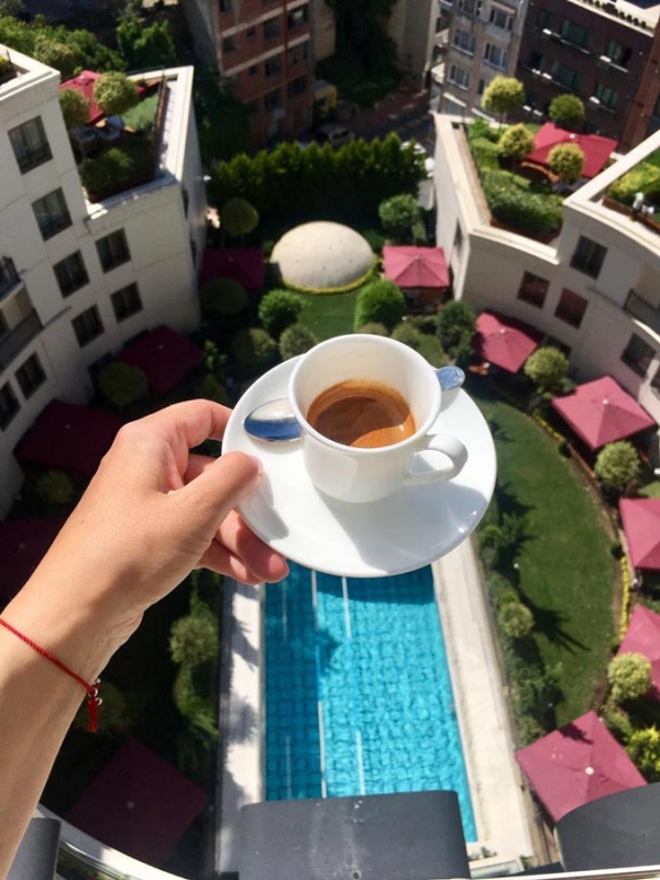 Небоскребы в Стамбуле отсутствуют из-за сейсмической активности, поэтому из окон хорошо виден весь город: и азиатскую часть на том берегу, и сбегающие к морю кварталы. А стеклянные мостики с красными ковровыми дорожками, перебегающие из здания в здание, вообще тянут на променад для звезд — здесь у всех возникает почти неконтролируемое желание сделать потрясающее фото.