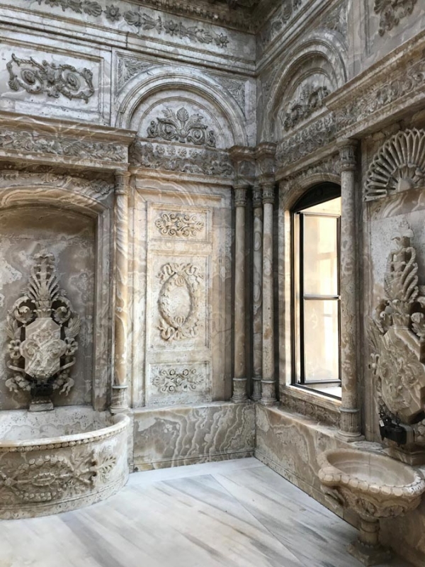 Зато есть самая большая люстра из богемского стекла в мире, подаренная королевой Викторией — она весит 4,5 тонн и достает почти до пола. И удивительная лестница с балясинами из горного хрусталя, которую часто повторяют архитекторы современных роскошных турецких отелей. В общем, как любят на Востоке: всё самое-самое — и золото не забудьте (его, кстати, было использовано 14 тонн).