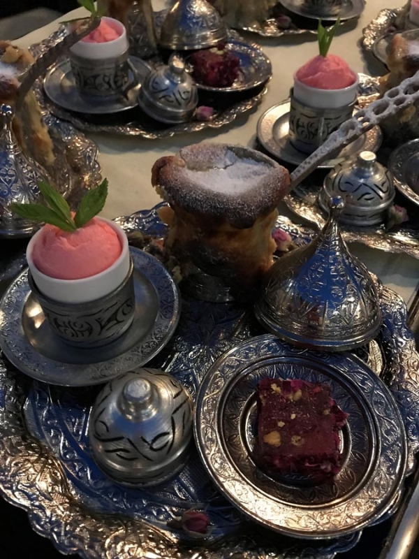 Любителям острого горячо советую антеп эзме — это турецкая аджика, закуска из перца и томатов, оторваться невозможно. А десерт из жидкой горячей тхины (кунжутная паста) с мороженым на розовой воде подается так, как будто вы — гость самого султана.