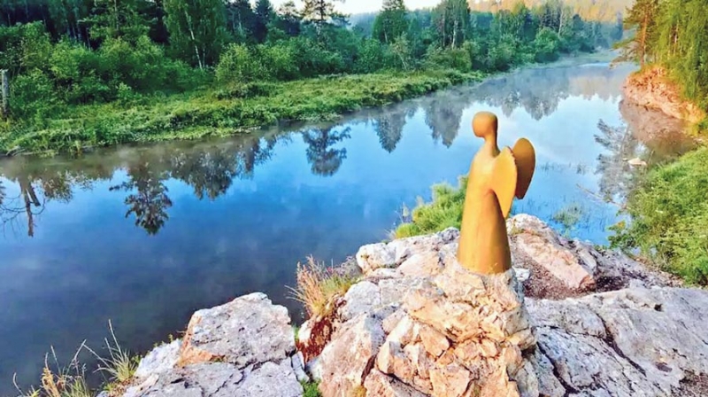 Ранним летним утречком, когда роса еще не высохла на листочках деревьев и переливается в лучах яркого солнышка, мы собрали рюкзаки, надели удобную обувь и отправились в семейный поход. А посетить мы захотели природный парк "Оленьи ручьи". Это сказочное место для ценителей чистого воздуха, голубизны рек, ярких красок лесов, гор и, конечно же, для любителей всплеска адреналина. От моего родного города Михайловска (кстати, за красоту его называют маленькой Швейцарией) парк находится в 20 км, поэтому через 20 минут мы были на месте. Всегда, когда собираюсь посетить новые места, я заранее читаю про них интересные факты. Вот и история названия этого места меня заинтересовала. Оказывается, эмблемой парка стал "Красный олень" — один из древних рисунков, обнаруженный на скале Писаница, сделанный охотниками около 1000 лет назад. Существует и легенда происхождения названия парка, согласно которой когда-то давно на этой территории охотники убили маленького олененка. Из слез скорбящей по нему матери образовались ручьи, которые до сих пор текут по всей территории парка. Обожаю легенды! Они заставляют нас окунуться в сказки и детство! И вот мы прибыли. Автомобиль оставили на парковке, достали карту и отправились в поход. Первым нас встретил Ангел мира. Считается, что фигуры Ангелов, установленные в разных частях света, обнимут планету, защитят ее от страха, отчаяния, катастроф. Аж мурашки по коже. И опять же приметы — как говорят туристы, загаданные здесь желания сбываются. Для надежности заветное мечтание скрепляется ленточкой на дереве за спиной ангела, а к подолу каменного хранителя добра ложится монетка. После всех этих манипуляций желание просто обязано сбыться! Так мы все и сделали и отправились дальше. Путь мы сопровождали песнями и шутками, настроение было на высоте. Вскоре нам открылся вид на скалу Утопленник — несмотря на название (здесь произошла гибель двух молодых людей), вид с этой скалы потрясающий! На скалах оборудованы смотровые площадки. И вообще в настоящее время все в парке сделано для безопасности: ограждения, предупреждающие таблички, перила. Сделав пару фотографий, мы отправились дальше.