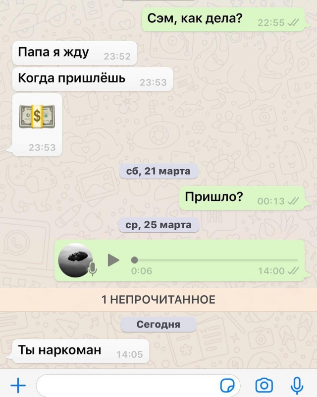 Алексей Долматов (Гуф), как и некоторые другие рэп-артисты, ничего не скрывает от публики, в том числе и свое пристрастие к запрещенным веществам. Рэпер неоднократно проходил лечение от зависимости, но полностью от своих пристрастий так и не избавился. Очевидно, что это увлечение сильно влияет на жизнь исполнителя и даже портит отношения с семьей.В Инстаграме Гуф опубликовал скриншот своей переписки с сыном, в которой ребенок игнорирует попытки отца пообщаться и напоминает, что ждет денег, а потом называет его наркоманом. В сложных отношениях с сыном Гуф обвинил свою бывшую жену, Айзу Анохину.