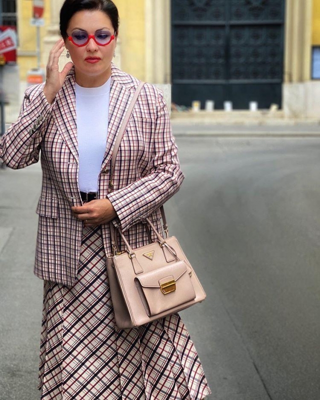Анна Нетребко Оперная певица Анна Нетребко известна на весь мир не только своим удивительным пением, но и умением безупречно выбирать наряды. Образы звезды пытаются копировать, но только она смотрится гармонично и изысканно в самых причудливых порой фасонах. Карантин Анна с семьей проводила в Вене, за это время Нетебко приготовила много самых разнообразных блюд, а также развлекала себя как могла, например, переставляла мебель. Как известно, в Австрии уже несколько недель постепенно снимается режим самоизоляции, поэтому звезда может прогулять по тихим улочкам. Анна Нетребко Вчера знойная брюнетка вышла из дома в стильном костюме от модного дома Prada. Юбка и пиджак в клетку, простая белая футболка и стильная красная оправа очков впечатлили фанатов. Особый фурор произвела небольшая сумочка пудрового цвета. К сожалению, модники не могут рассмотреть на фото длину юбки и обувь, которую выбрала Анна — придется додумывать самим. Анна Нетребко Звезду поздравили с тем, что она может выходить на улицу, многие отметили, что небольшая прогулка пусть и по пустой улице хотя бы полчаса подняла бы им настроение. Пока у нас нет такой возможности, остается только забрать образ Анны в закладки для того, чтобы повторить его (или создать нечто подобное!), когда мы сможем выйти из дома.