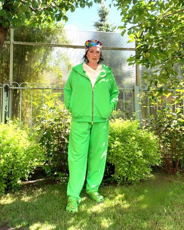 Несколько часов назад актриса опубликовала снимки из подмосковного Серпухова. Лариса облачена в яркий спортивный костюм — салатовый цвет решится примерить далеко не каждая женщина, но смелости Гузеевой не занимать, в тон костюму подобраны резиновые шлепки, а голову украшает платок, повязанный назад.