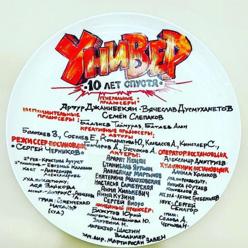 Сериал «Универ» является одним из самых популярных в истории отечественного телевидения. Он продержался на экранах 10 лет, а последняя серия вышла в 2018 году. Поклонники актеров, принимавших участие в съемках, до сих пор надеялись на продолжение и регулярно спрашивали о возобновлении съемок сериала. Сегодня актриса Настасья Самбурская сообщила, что продолжение все-таки будет.В Инстаграме актриса опубликовала снимок тарелки, на которой по традиции написано название проекта «Универ. 10 лет спустя», а также задействованных в нем актеров, продюсеров и съемочной группы. Актриса сообщила, что об этом должно было стать известно позже, однако она больше не могла скрывать радостную новость от зрителей.