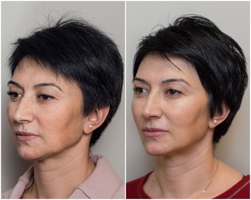 Произойдет улучшение конфигурации лица: черты станут более пропорциональными и гармоничными. Коррекция зоны под глазами сделает лицо более мягким и женственным.