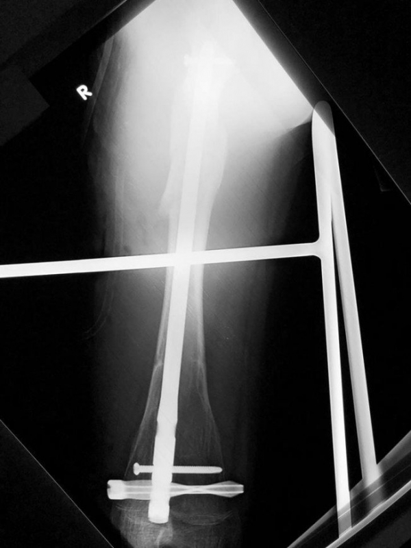 16-летний подросток ломал правую ногу всего год назад и вновь оказался на операционном столе. Медики Детской городской клинической больницы Святого Владимира соединили и зафиксировали костные отломки.