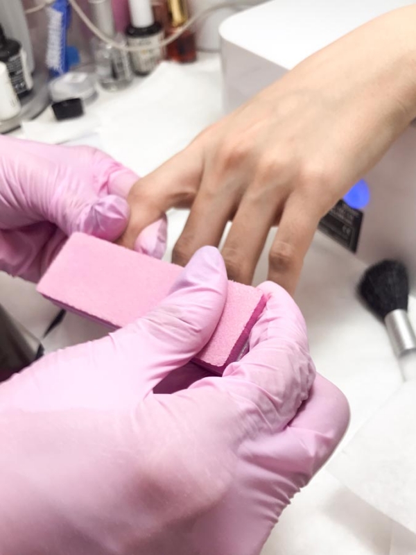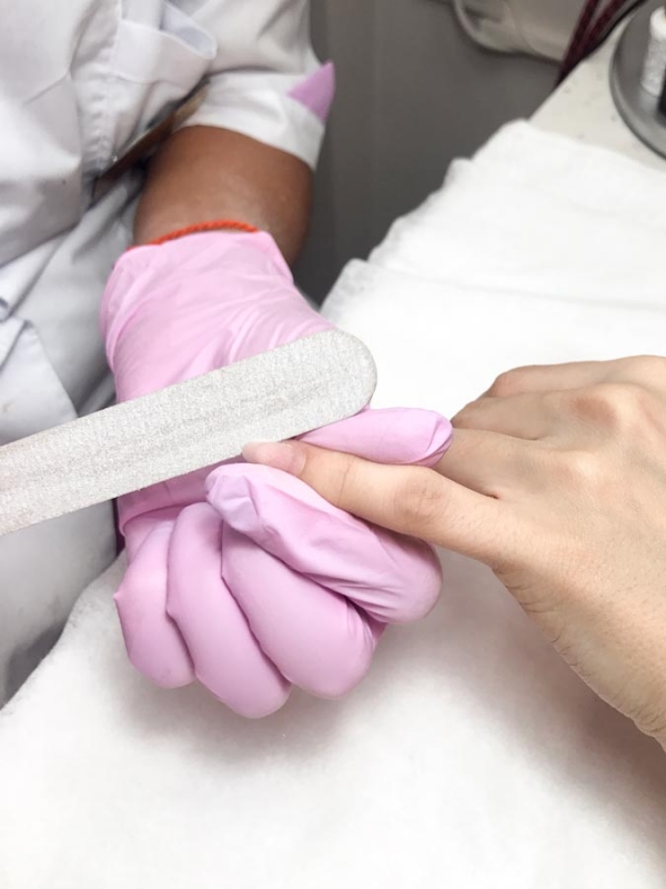 - После того как сняли старый лак, корректируем форму ногтей с помощью пилочки. Мы решили придать ногтям овальную форму.